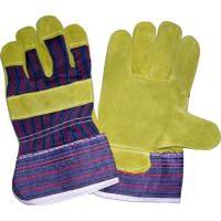 Light yellow cow split leather workin gloves with stripe fabirc, half lining, pasted cuff ,size:10.5"